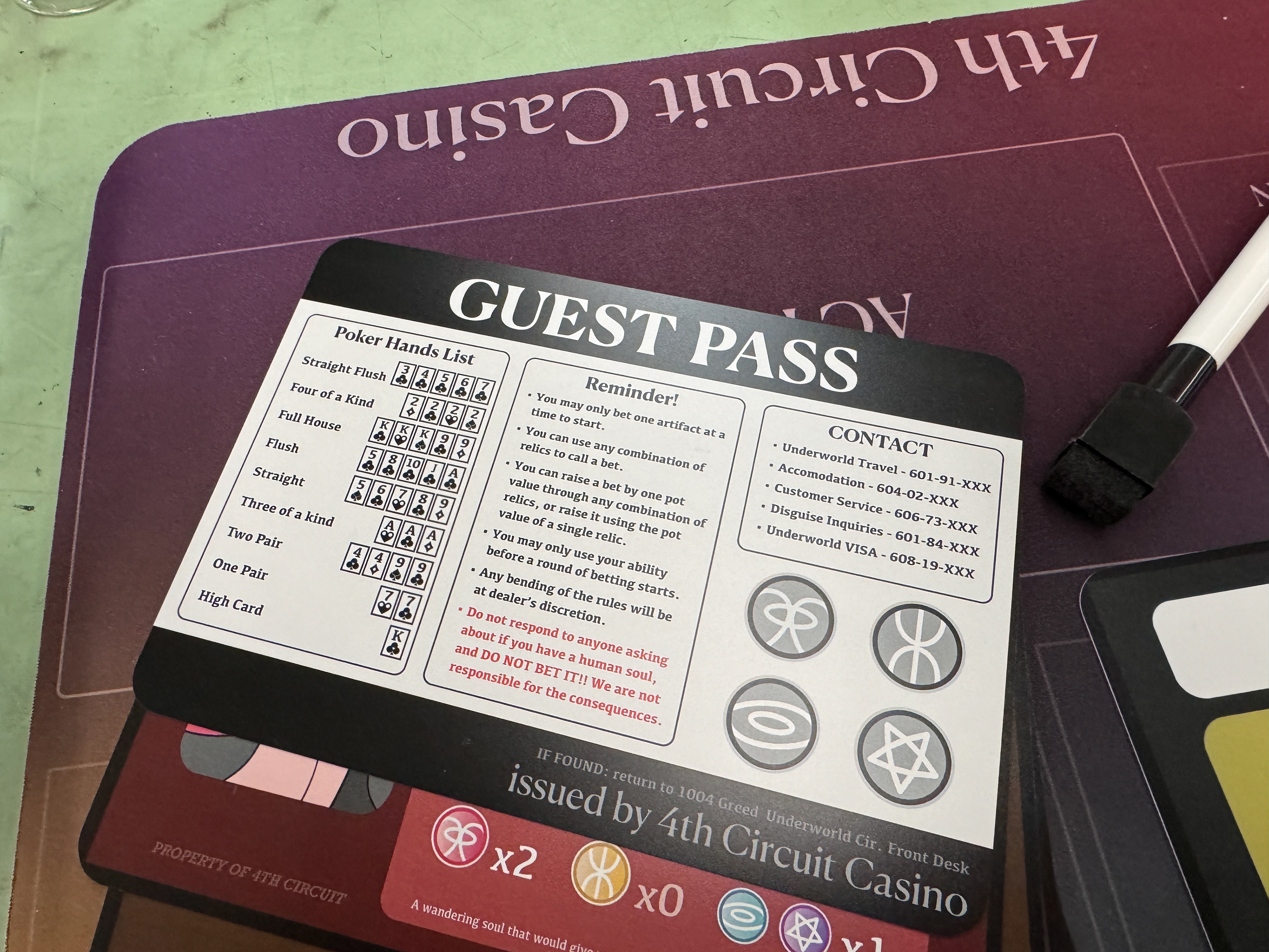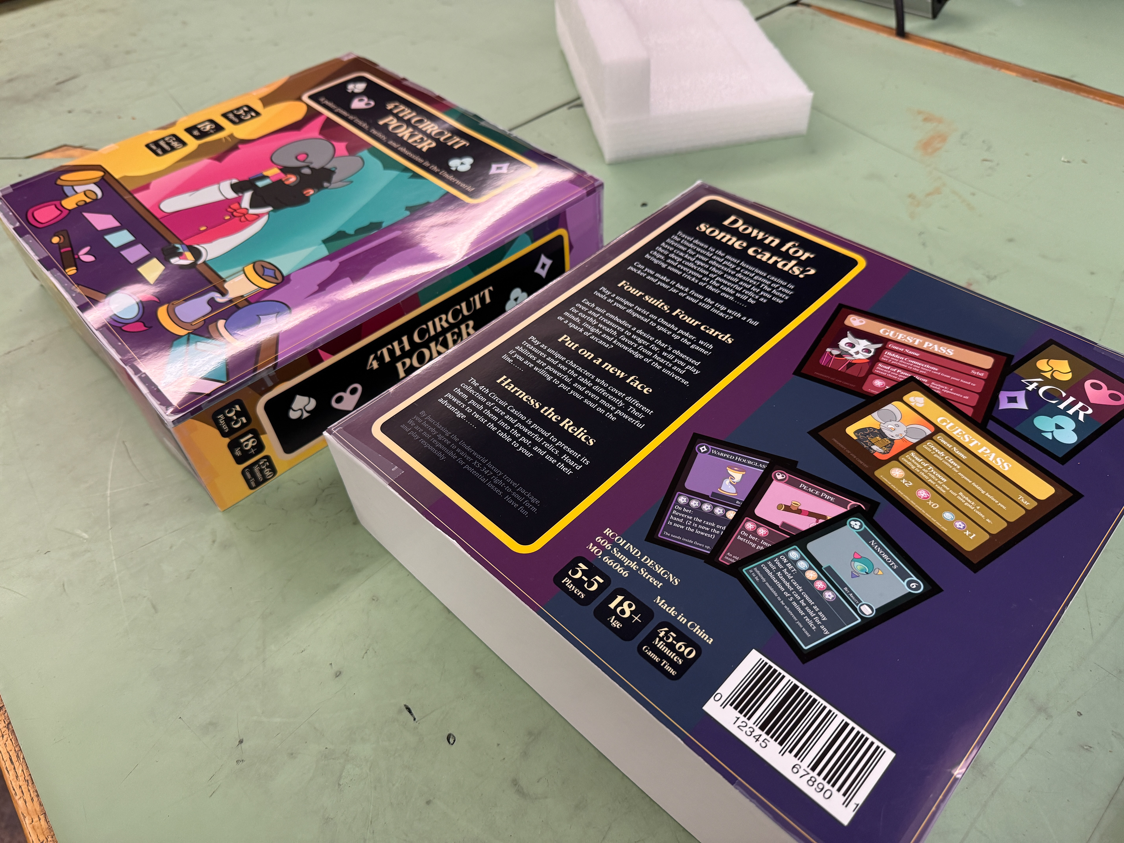 Prototyping a physical product was a new experience that taught me a lot. This set was custom ordered, and expensive, but having it done by professionals was worth sparing the headaches of doing every element myself by hand.